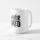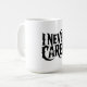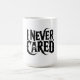 Start your day with a defiant edge. This bold mug features the striking "I NEVER CARED" declaration in sharp, angular Gothic typography, rendered in crisp black and white for maximum impact.