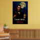 Turn your walls into a moonlit masterpiece. This poster showcases a stylish vampire toasting the night with a bottle of “Vintage Full Bodied,” set against a gothic castle and the quote “I never drink… wine.” With rich tones and theatrical flair, it’s perfect for dorm rooms, home offices, or haunted hallways.