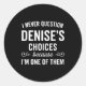 I Never Question Denise's Choices Because I'm One Classic Round Sticker