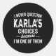 I Never Question Karla’s Choices - Karla D Name Classic Round Sticker