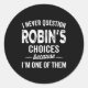 I Never Question Robin’s Choices - Robin D Name Classic Round Sticker