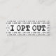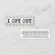 The phrase "I Opt Out" in the context of opting out of tyranny conveys a deliberate decision to disengage or refuse to participate in oppressive or authoritarian systems. When someone says "I Opt Out" in this way, they're asserting their choice to reject or distance themselves from control, manipulation, or unjust rule.