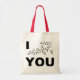 Design associated with the mug, but in tote form. Tell someone you love them.