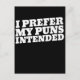 "Discover the clever charm behind 'I Prefer My Puns Intended' – a playful celebration of witty wordplay and intentional humour. Perfect for pun enthusiasts, this phrase brings a smile with its smart and intentional twist. Explore products, designs, and content that embrace the art of puns, combining creativity with laughter. Ideal for those who appreciate clever quips and a lighthearted touch to everyday life." I prefer my puns intended