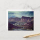 Inspirational quote custom postcard depicts a girl jogging, surrounded by amazing mountains and the beauty of nature and features Bible Verse Philippians 3:14, Forgetting the past... I press on toward the goal of the high calling of God in Christ Jesus. The back greeting can be modified or deleted for a blank card.~