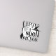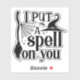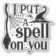 This classic Halloween design features the spooky phrase "I Put a Spell on You" in a bold, gothic-inspired font. The black and white colour scheme enhances the eerie atmosphere, making the design perfect for the Halloween season. Accompanying the text are iconic witchy elements, including a pointed witch's hat, a broomstick, a spider web, and a tiny spider, all arranged to create a bewitching composition. The subtle detailing of dots around the text adds a touch of magical charm.