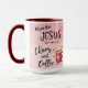 Personalize this Unique "One of a Kind" Christian Mug! Featuring Comical Inspirational Words..."I Run On Jesus, Chaos and Coffee"... and a Beautiful Mug of Hot Coffee Surrounded by Flowers and Hearts!
