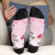 Personalize these Funny "One of a Kind" Christian Women's Socks! It Features a Mug of Hot Coffee Surrounded by Flowers and Hearts on a Pink and White Background and the Comical Words..."I Run On Jesus, Chaos and Coffee"!