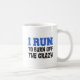 I Run To Burn Off The Crazy funny mug. A great mug for a runner! Do you run to relieve stress? A funny, running gift.
