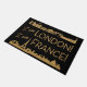 Hilarious quote doormats for greeting your unsuspecting guests. Enjoy the nervous giggles as they think twice about stepping on this funny entryway mat. Even though you probably can't really see their underpants (right?), it's a hilarious and unexpected addition to an otherwise normal entry. A golden hued graphic with a raven black background that shows off the iconic places you would enjoy on a trip to London and France. Cute old school saying with a comical modern finish.