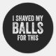 I Shaved My Balls For This captures a humourous and unexpected twist, showcasing a design that embraces a bold and unconventional choice with a touch of playfulness and surprise.