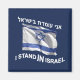 Don't just stand with Israel; stand IN Israel. Features an Israeli flag. English text below the flag reads, I STAND IN ISRAEL." Hebrew text above the flag reads, "Ani omedet b'Yisrael" (אני עומדת בישראל). Come home, make aliyah. Join those who were born here and those who have come home. There is no greater way to show your support for Israel than to become a citizen and live here.