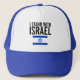 I Stand With Israel text and Israeli flag printed on trucker hat.