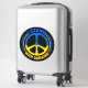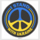 I Stand With Ukraine! Show love and support for the Ukrainian people with this unique peace symbol design. It features blue and yellow, the colours of the Ukraine flag. Shown here on a custom contour sticker. You can delete the black round background shape, if you prefer, to have the design with no background. Different sizes are available. These stickers are reusable and water-resistant. Great for sticking on your car! Pray for peace and to stop the war. Show Ukrainians that you support them!