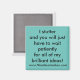 Disclose your stuttering on your fridge, your file cabinet and wherever else you can stick a magnet! Text: I stutter and you will just have to wait patiently for all of my brilliant ideas! On a sea-green background (the colour of stuttering awareness).