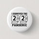 Funny 2020 pandemic button with toilet paper with saying, "I survived the 2020 pandemic." Simple black and white design.