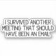Celebrate your resilience with our witty design, "I Survived Another Meeting That Should Have Been an Email." This funny work joke captures the relatable frustration of unnecessary meetings.