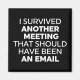 I Survived Another Meeting That Should Have Been An Email Funny Black & White Quote Saying Typography