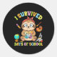 I Survived Six Seven Days Of School Cute Sloth Stu Classic Round Sticker