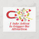 Postcard with a Positive Affirmation : I TAKE ACTION TO TRIGGER THE ATTRACTION. The "Law if Attraction" does not work unless it is accompanied by vigourous, positive, determined action. This action - coupled with a joyous, positive visualization of the desired outcome - is the secret ingredient that magnetizes the subconscious mind to manifest the desired result. The universe always conspires to help those who take real action towards a cherished dream or goal. The design has a magnet, dollar signs, red and pink hearts and lightning flashes. Give this postcard to a friend, family member or colleague who needs encouragement and motivation - or pin it up where you yourself can see it to stay focused and motivated. .