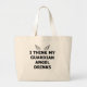 I Think My Guardian Angel Drinks Large Tote Bag