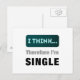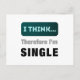 I think...therefore I am. A quirky quote that reflects the joyous and occasionally annoying state of being single. Cool simple design on white background so you can customize whatever colour you want