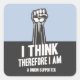 "I think, therefore I am - a union supporter." Text with a raised fist, on t-shirts, sweats, novelty gift swag.