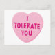 I Tolerate You Valentine's Day Heart Candy Holiday Postcard