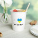 A heart shaped flag of the Ukraine is used in place of the word LOVE. The design was created to allow the buyer to personalize with the buyer's own text as to what is loved. The buyer can, also, customize a gift. It would read, I LOVE YOUR TEXT. The Ukrainian flag has a large, blue space on top, with a large yellow space below.