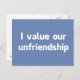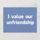 Sometimes we post things that our friends don't like and mysteriously they unfriend you. Not that we're bitter but send them a postcard to tell them how much you value their unfriendship! *Our products are for comedic purposes only and are not meant to disrupt or ruin relationships. Though some of us may be bitter..at the end of the day it's social media.* Yes we're still bitter. grrrr.