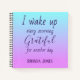 A lovely notebook for displaying your gratitude, this item features lined paper on the inside with a blue and purple ombre background. "I wake up every morning grateful for another day" is written in fun cursive font. The bottom features a place for entering your name. You can modify the inside of the paper with a variety of choices. Personalize your gratitude notebook today!