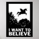 "I Want To Believe" pegasus graphic designed by bCreative shows the silhouette of a pegasus flying over the trees! This makes a great gift for family, friends, or a treat for yourself! This funny graphic is a great addition to anyone's style. bCreative is a leading creator and licensor of original, trendy designs and properties. ©LCT Creative. License from bCreative.com