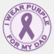 Purple ribbons are used to promote awareness for lupus, sarcoidosis, and fibromyalgia. Purple awareness ribbons also promote education and remembrance for violence against women. Purple ribbons are also used to promote domestic violence awareness, childhood stroke awareness, cystic fibrosis awareness, Alzheimer's disease awareness, and pancreatic cancer awareness. Purple ribbons symbolize Worker's Memorial Day. This unique awareness design features one large purple ribbon encircled by a lot of small purple ribbons. The text around this circular design reads I Wear Purple For My Dad. This unique design is a great way to show awareness support.