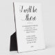 This elegant black and white memorial wedding standing sign is a beautiful way to pay tribute to those who have passed, but are celebrating with you in spirit, by placing this on the chair they would have sat in. Part of the Alejandra wedding collection.