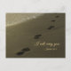 This postcard features a single set of footprints in beach sand with a quote from Biblical scripture, Isaiah 46:4, I will carry you.