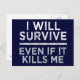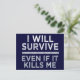 “I will survive – even if it kills me”. Add your own text / image on the back. See my store for more items with this design.