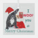 "I woof you a Merry Christmas" Bulldog Puppy Glass Ornament