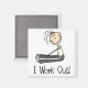 A stick figure girl exercising and text that reads "I Work Out!" on a customizable stick figure fitness theme magnet.