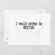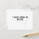 A cartoon bubble reads 'I would rather be WRITING' in black letters against a white background. Unique postcards for writers and fun writing gift idea.