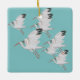 White Ibis in flight on aquamarine background. Whimsical sketchy illustration of coastal birds.