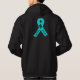An ICSU (Interstitial Cystitis Sisters United) exclusive. A popular black "hoodie" sweatshirt with the IC Sisters United ribbon on the back and a small ICSU logo on front right. Designed for black fabric background.