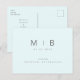 Simple & Sleek Ice Blue with Grey Monogram Save the Date. Wedding. First and Last Names. Modern. Tropical. Postcard.
