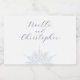 Ice blue snowflake winter mini wedding sparkling wine bottle labels with elegant calligraphy. Detailed icy blue snowflake design. Customise with your names and your wedding date in dark navy calligraphy and serif lettering. Designed to match our Ice Blue Snowflake Winter Wedding Collection.