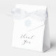 Ice blue snowflake winter wedding thank you favour box with elegant calligraphy. Detailed icy blue snowflake design. Customise with your names and your own message in dark navy calligraphy and serif lettering. Designed to match our Icy Snowflake Winter Wedding Collection.