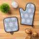 Ice blue snowflake oven mitt & pot holder set
