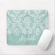Ice Blue Vintage Damask Pattern with Grungy Finish Mouse Pad