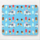 A cute retro aesthetic digital illustrated pattern of fun pastel retro style ice cream trucks happy sweet treats adorable fun summer flashback nostalgia memories design deluxe carry all computer home or office fun mousepad. Get a kitschy fun retro ice cream van pattern mouse mat today.
