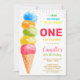 This cute invitation features a watercolor ice cream cone in rainbow colours.