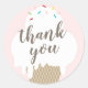 A fun kids birthday thank you sticker featuring hand drawn ice cream cone with rainbow sprinkles.