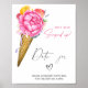 This ice cream-themed bridal shower is decorated with watercolor florals and an ice cream cone. The text says "She's been scooped up!" in stylish pink script typography.